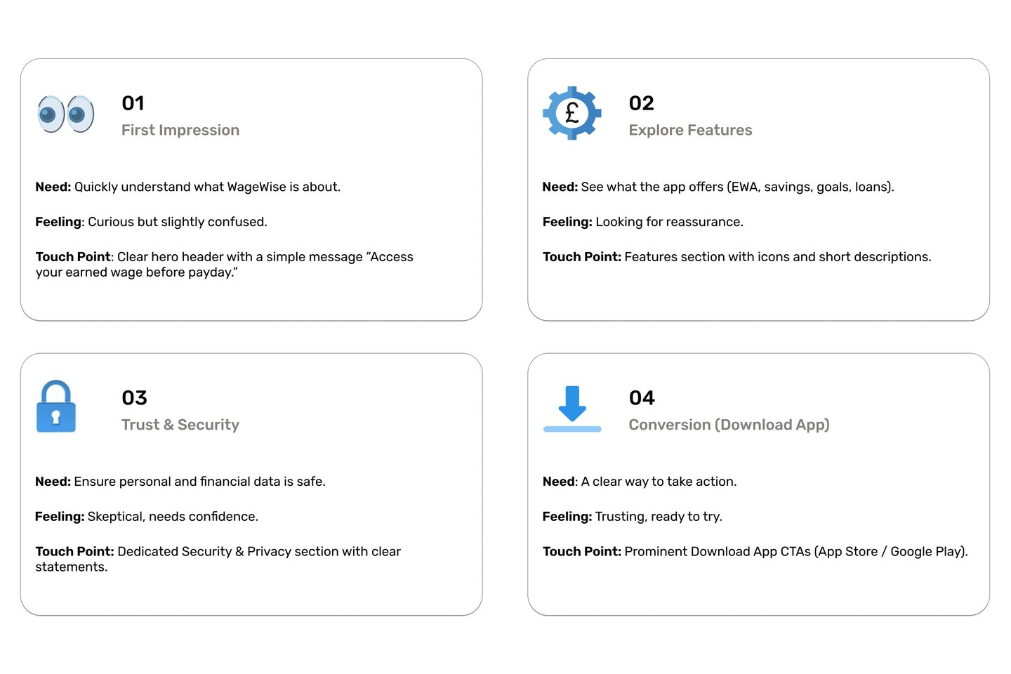 Mapping the journey helped structure the landing page for clarity, trust, and motivation to download.