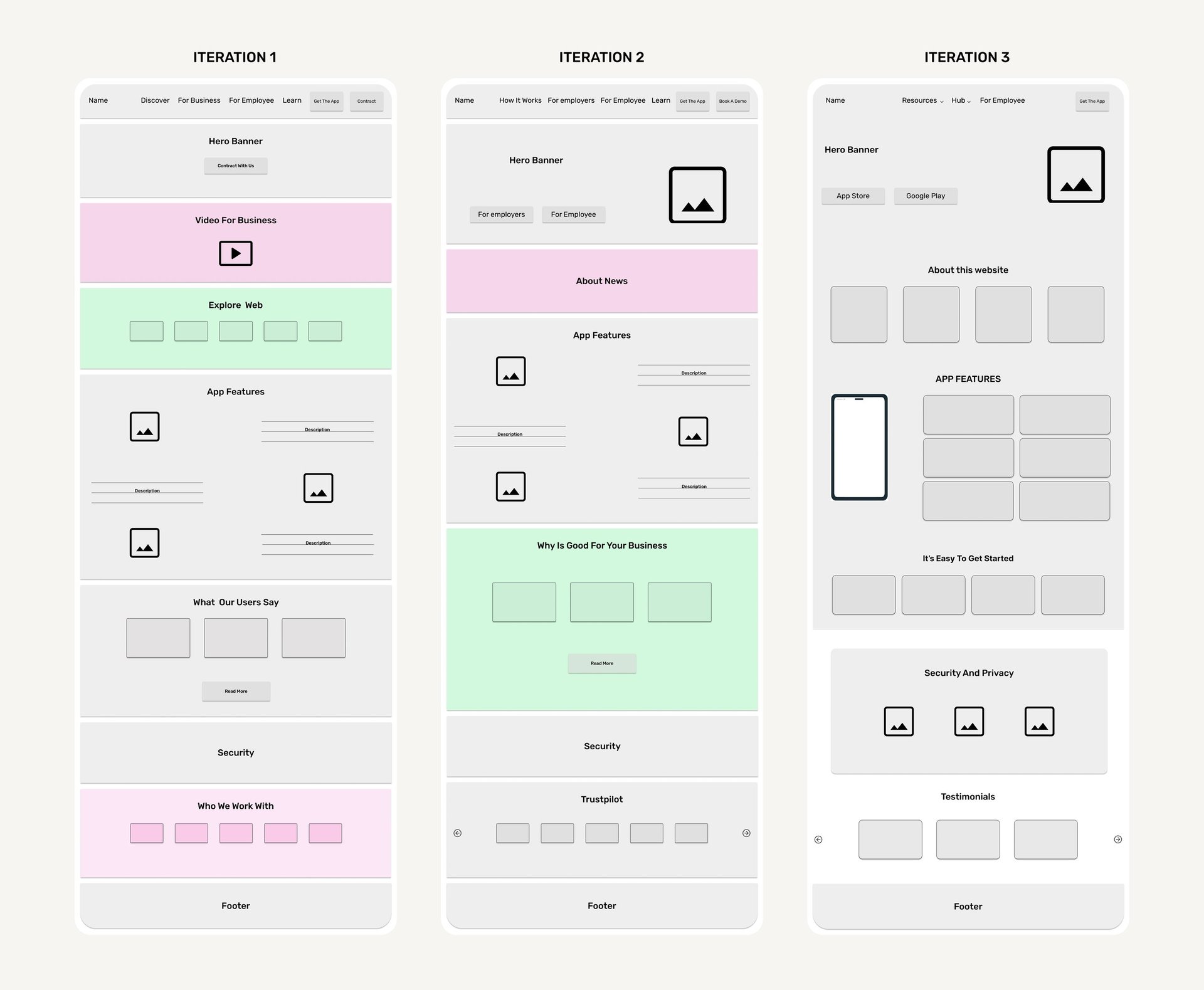 I created content hierarchy, wireframes, and prototypes for the landing page, ensuring that the design not only communicates the product’s value clearly but also motivates employees to download the app.